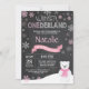 Hiver Onederland Ours polaire 1er anniversaire Invitation. Cerf. Flocon de neige rose et blanc. Premier anniversaire. Fille 1er Anniversaire Invitation. Arrière - plan de tableau de bord. Noir et blanc. Pour plus de personnalisation, cliquez sur le bouton "Customiser" et utilisez notre outil de conception pour modifier ce modèle.