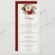 Ajoutez du charme saisonnier à votre réception avec ce menu de mariage d'hiver. Conçu avec des fleurs rouges et ivoire festives, des sprigs de pin et une calligraphie élégante, il est parfait pour les mariages de Noël rustiques. Une belle façon de présenter vos cours avec chaleur de vacances.