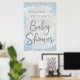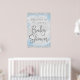 Baby shower d'hiver merveilleux signe de bienvenue avec de jolies lettres d'argent sur un arrière - plan de flocon bleu argenté. Ce panneau d'accueil de baby shower de flocon de neige d'hiver est facilement customisé pour votre événement en ajoutant simplement vos détails.