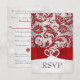 Définissez le ton de votre mariage de Noël ou d'hiver avec cette carte de réponse de mariage peu coûteuse, mais élégamment luxueuse, au motif de damas à paillettes fausses rouge et gris argenté avec un fond de flocons de neige blancs et un ruban rouge imprimé et un nœud avec une paire de bijoux en diamant et des cœurs joints en paillettes rouges fausses. Elle serait parfaite pour un thème de conte de fées hivernal ou pour un mariage de Noël ou du Nouvel An avec une palette de couleurs rouge et argent. Elle comporte des réponses amusantes de type mad-lib qui demandent à vos invités de répondre qu'ils seront là avec des cloches, qu'ils seront là sans cloches, qu'ils seront là... indécis sur les cloches, ou avec leurs regrets en disant qu'ils ne seront pas là, car ils ont entendu dire qu'il y aurait des gens portant des cloches, ou qu'ils ne seront pas là, quelle que soit la controverse sur les cloches. Quel meilleur moment pour utiliser cette carte de réponse amusante que pour votre mariage d'hiver ou de Noël ? Les gens pourraient même se présenter avec des cloches ! ***VEUILLEZ NOTER qu'il n'y a pas d'éléments en relief sur cette invitation. Tout est imprimé à plat. ***VEUILLEZ NOTER que si vous