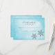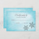 Une carte d'invitation RSVP élégante à thème hivernal. Avec des illustrations de flocon de neige étincelant/parties scintillant sur un arrière - plan bleu turquoise. Parfait pour les mariages, fêtes de 16 ans et plus !