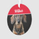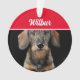 Christmas isn't complete without an ornament on the tree for the family dog! Add their photo and name to this cute wire-haired Dachshund dog breed specific themed two-sided ornament.