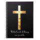 Sleek and elegant design. This notebook features a golden cross and the words with God all things are possible.
