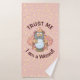 Vieux sorcier avec cape rose regardant la boule de cristal magique. Texte personnalisé.