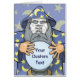 Old wizard with blue cape and crystal magic ball. Use face photo to customize. Custom text.