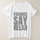 Women's Frankie Say Relax Tshirt with large gray letters