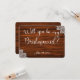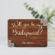 Joli grain de bois foncé avec effet dentelle détails. Un style rustique parfait pour aider la mariée à poser une question importante. Les invitations et les cartes sont disponibles dans une sélection d'options de forme (arêtes arrondies, échalotes, etc.) et dans un choix de textures de papier. Les styles de police, les couleurs et la taille sont personnalisables. Vous pouvez trouver d'autres conceptions avec de nombreux produits de coordination dans notre magasin, y compris des invitations, enregistrer la date et les cartes rsvp, étiquettes de remerciement, et plus encore.