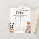 Woodland Animals Baby Name Race Game Card