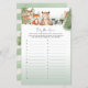 Woodland Baby shower Game - Baby Items Cette Baby shower Game Card complète ma collection de Baby showers WOODLAND. Vous trouverez l'Invitation, les Inserts, les Signes et les articles correspondants dans ma boutique Zazzle.