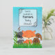Les animaux de la forêt, le renard, le raton laveur, le hérisson et l'écureuil. Personnalisez cette invitation en ajoutant vos informations sur cette invitation de baby shower de bébé bleu turquoise et de couleur noire dans la zone de personnaliser.