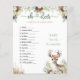 Bienvenue dans notre collection de Baby showers de cerfs de bois! Prévoyez-vous un baby shower spécial pour célébrer l'arrivée prochaine de votre petit? Ne cherchez pas plus loin car nous avons juste ce dont vous avez besoin - un ensemble complet d'essentiels personnalisés et faciles à customiser pour rendre votre événement spécial! Avec notre charmant cerf aquarelle et des motifs floraux, notre collection apportera une touche de fantaisie à votre baby shower. Plongeons dans ce décor enchanteur : - Invitations : Commencez l'excitation en envoyant des invitations magnifiquement conçues pour que vos invités comptent avec impatience les jours jusqu'à la fête. - Raffle de couches : Faites participer vos invités et stocks sur ces produits de première nécessité ! Nos cartes de tirage de couches vous aideront à organiser cette activité où les invités peuvent gagner un prix en apportant un paquet de couches pour les parents à venir. - Cartes de remerciements : Montrez votre reconnaissance à vos proches avec nos cartes de remerciements adorables. Faites-leur savoir à quel point vous êtes reconnaissant de leur présence et de leurs dons réfléchis. - Livres pour Baby Enfermer Cartes : Encouragez un amour pour la lecture dès le début! Ces cartes d'enclos sont idéales pour demander aux clients d'apporter un livre au lieu d'une carte, assurant ainsi une bibliothèque bien remplie pour votre petit. - Signes de Baby shower : Ajoutez la touche finale parfaite à votre lieu de baby shower avec nos panneaux uniques. Des panneaux de bienvenue aux panneaux directionnels, nous avons tout pour aider vos invités à naviguer sans effort dans la célébration. - Baby shower Photo Book. Et ce n'est pas tout ! Nous offrons des collections séparées pour les garçons et les filles, ce qui vous permet encore plus de personnaliser votre baby shower pour qu'il corresponde au sexe de votre enfant.