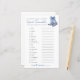 Quelque Chose De Bleu Avant Moi ! Elégant jeu de Fête des mariées de démarrage Cowboy - Word Scramble. Ajoutez un peu de plaisir à votre douche nuptiale avec cette activité classique où les invités essaient de démêler les mots liés au mariage. C’est une façon ludique de faire participer tout le monde en célébrant la future mariée. Cette carte de jeu comporte une paire de bottes de cowboy bleues fantaisie ornées d'un grand arc d'aquarelle. Les bottes sont décorées d'une motif d'inspiration florale ou chinoiserie, donnant à l'ensemble une touche élégante au charme rustique de la campagne. Parfait pour un thème "Quelque chose de bleu avant moi !". Un mélange élégant de polices bleu foncé et gris, alliant écriture manuscrite et typographie serif classique pour une sensation polie et moderne. Entièrement personnalisable, vous pouvez modifier les mots brouillés, les couleurs de police et l'arrière - plan pour correspondre à votre thème de douche nuptiale. Cette activité apporte une touche personnelle et charmante à toute célébration.