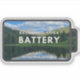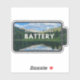A battery shaped sticker with a beautiful reflected mountain view on a water reservoir in Winter Park, Colorado with the reminder to recharge your own battery.