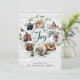 Un design festif de cartes de vacances qui comprend huit de vos photos préférées arrangées dans un design rond de couronne accentué par le feuillage vert aquarelle, les cônes de pin et les baies sèches rouges sur un arrière - plan blanc fermier en bois. "Joy" apparaît dans le centre dans la forêt festive vert main lettré typographie de script de brosse. Personnalisez cette conception de collage photo de vacances unique avec votre salutation de Noël personnalisée et les noms en bas.