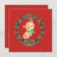 Festive de conception de vacances avec renard capricieux et couronne sainte sur arrière - plan rouge. Personnaliser avec nom ou message spécial sur le dos