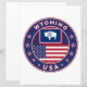 Badge de Wyoming avec drapeau du Wyoming et drapeau des États-Unis couleurs, forme arrondie. Emblème du Wyoming. Sceau du Wyoming. Collection USA Etats.