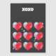 Coeurs et étoiles rouges 3d romantiques, coeurs futuristes brillants, design hitech de l'espace, texte xoxo personnalisé de la Saint Valentin