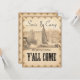 Une touche d'hospitalité méridionale dans ce superbe design mariage à thème champêtre qui a un grand "Y'all Come" et comporte une photo sépia d'une grange et de l'équipement agricole dans l'arrière - plan. Customisez en utilisant le modèle facile pour entrer vos propres noms, date et détails au verso. Recherchez ID651 pour voir tous les produits correspondants dans ce jeu de conceptions mariage.