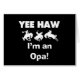 Yee Haw Je suis un t-shirt Opa, des tasses, des cartes, des autocollants, des boutons de faire-part, des opa keepsakes, et d'autres vêtements opa et des cadeaux avec un cheval buckaroo et le texte noir ou blanc. Ces vêtements opa et cadeaux sont parfaits pour les grands-parents ou les opas assaisonnés d'une nouvelle arrivée!