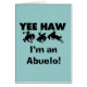 Yee Haw Je suis un T-shirt Abuelo, tasses, cartes, autocollants, boutons de faire-part, des tenues abuelo, et d'autres vêtements abuelo et cadeaux avec un cheval buckaroo et le texte noir ou blanc design. Ces vêtements et cadeaux sont parfaits pour les grands-parents de la première fois ou les abuelos assaisonnés d'une nouvelle arrivée!