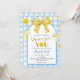 Yellow Coquette Bow Lemon Baby Shower Invitation, Can't Wait To Squeeze You Baby Shower Invite, Editable Blue Plaid Baby Shower
