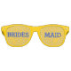 Lunettes de fête jaune de la servante amusante avec l'objectif en jaune, avec lecture de texte personnalisé bleu, BRIDES MAID. Idéal pour la soirée bachelorette.