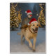 Humorous Christmas card featuring a yellow Labrador and a Partridge in an apparent truce over the Christmas period! The Partridge is riding the yellow Labrador in a snowy scene with Christmas trees twinkling in the background.