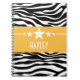 Carnet moderne et tendance Sassy Star Zebra, avec un arrière - plan design en papier zèbre noir et blanc et une bordure jaune audacieuse ornée d'un motif étoilé amusant. Ce design girly peut être customisé avec le texte personnalisé de votre choix. Cliquez sur "Customiser" pour trouver d'autres options de personnalisation.