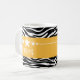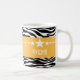 Tendance et moderne Sassy Star Zebra Mug avec un arrière - plan design en zèbre noir et blanc et une bordure jaune audacieuse ornée d'un motif étoilé amusant. Ce design girly peut être customisé avec le texte personnalisé de votre choix. Cliquez sur "Customiser" pour trouver d'autres options de personnalisation.