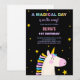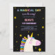 Yellow Stars Unicorn Invitations d'anniversaire