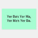 Yer Da's Yer Ma, Yer Ma's Yer Da : Stickers, avec lettrage noir sur Arrière - plan bleu.