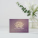 Yoga Studio Méditation Instructeur / Coach Vie / Guérisseur / Reiki Master / Massage Thérapie 10 Classe Pass Fidélité Rendez-vous Modèle de carte d'affaires - Moderne Elégant Faux Gold Lotus sur Arrière - plan Grunge Violet.