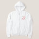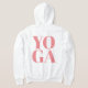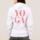 YOGA zippé sweat - shirt à capuche en toison blanc pour femmes. Design de typographie moderne. Vêtements personnalisés pour amoureux du yoga, enseignant, instructeur, étudiant, studio etc. Impression recto verso avec texte rose corail. Disponible en gris, blanc, noir et autres couleurs.