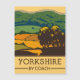 Yorkshire en car, belle ancienne affiche de voyage représentant le paysage des dales du Yorkshire.