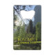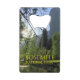 Ce décapsuleur de carte de crédit montre une photo du parc national Yosemite. Pris par ma belle-fille Brittany Mann, cette magnifique photo montre le coucher du soleil à travers les arbres, un fond de vallée verdoyant et des montagnes majestueuses. Au bas de cet ouvre-bouteille se trouvent les mots "Parc national Yosemite".