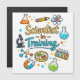 Colorful science themed artwork with playful lettering and icons. Perfect for young science fans, students, and aspiring scientists who love learning, experiments, and curiosity.