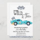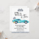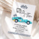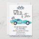 Race on over — someone’s turning Three! This adorable third birthday invitation features a vintage race car in cool watercolor blues, complete with a fiery flame bursting from the back wheel for extra zoom! Perfect for your little speedster’s big day, this retro design combines classic car charm with playful energy, setting the pace for a fast and fun celebration.