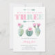 Cactus rose et vert clair 3e anniversaire invitations pour une fille