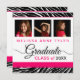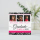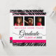 © Designs socialites. Modèle zèbre rose chaud, girly et sassy 3-photo invitation de graduation. Un amusant invitation de diplôme pour une jeune femme célébrant une merveilleuse réussite.