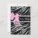 Invitation Baby shower fille. Rose, noir & argent. Jolie impression zèbre avec arc et bijoux roses. Exclusive Zazzle. Remarque : Toutes les images Plat, elles n'ont pas de vrais arcs ou bijoux! !