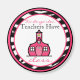 Un aimant pour les enseignants avec le logo de The Pink Schoolhouse à l'intérieur d'un cadre en forme de cercle en forme de zèbre avec garniture rose. Texte noir et rose : "Les enseignants de maternelle ont des cours."
