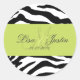 Impression zèbre noir et blanc, autocollants de mariage monogramme (scellants d'enveloppe), nuances d'accent céleri. Idéal pour un usage quotidien. Entièrement personnalisable. Les polices et les couleurs arrière-plan peuvent être facilement changées. Copyright © 2009 PixDezines.com et PixDezines sur zazzle.com