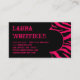 Zèbre noir rose chaud Imprimer Carte de visite ani