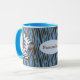 Les zèbres personnalisés mignons et le faux bleu donnent à la tasse bleue de sonnerie de poster de animal avec deux beaux petits zèbres bleus lunatiques de bande dessinée et une plaque d'identification pour que vous personnalisiez. Ces tasses élégantes et adorables font un chic unique ont annoncé le cadeau pour des ados, des filles, des garçons, des enfants, des hommes et des femmes de tous les âges. NOTEZ SVP : Tous les éléments sont imprimés - TEXTURE NON VRAIE de FOURRURE - ceci est une image numérique de texture de fourrure. Si vous avez besoin d'aide customisant votre produit svp me contactez par mon magasin et je serai heureux d'aider.