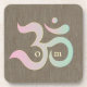 Symbole Om en couleurs pastel sur un arrière - plan d'impression en faux burlap foncé.