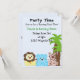 Le plus mignon tigre, lion et léopard met l'accent sur cette amusante invitation d'anniversaire à thème jungle. Des palmiers soufflent dans l'arrière - plan. Customisez avec tous vos renseignements personnels comme vous le souhaitez. Une invitation amusante zoo animal.